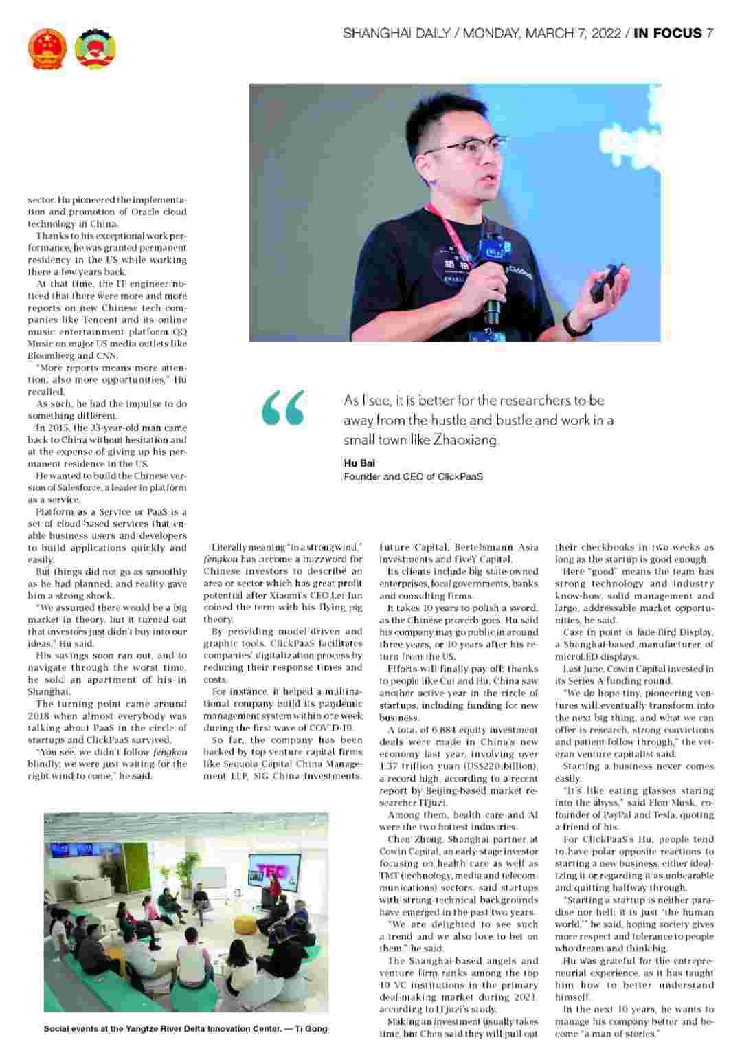 近日,,钱能钱包创始人、、CEO胡柏接受了《上海日报》采访,,关于自己当初为何选择创立钱能钱包,,又为何将公司落户于上海青浦,,分享了其背后的故事。。